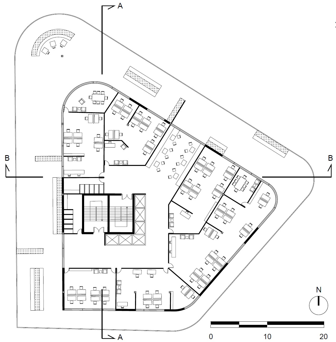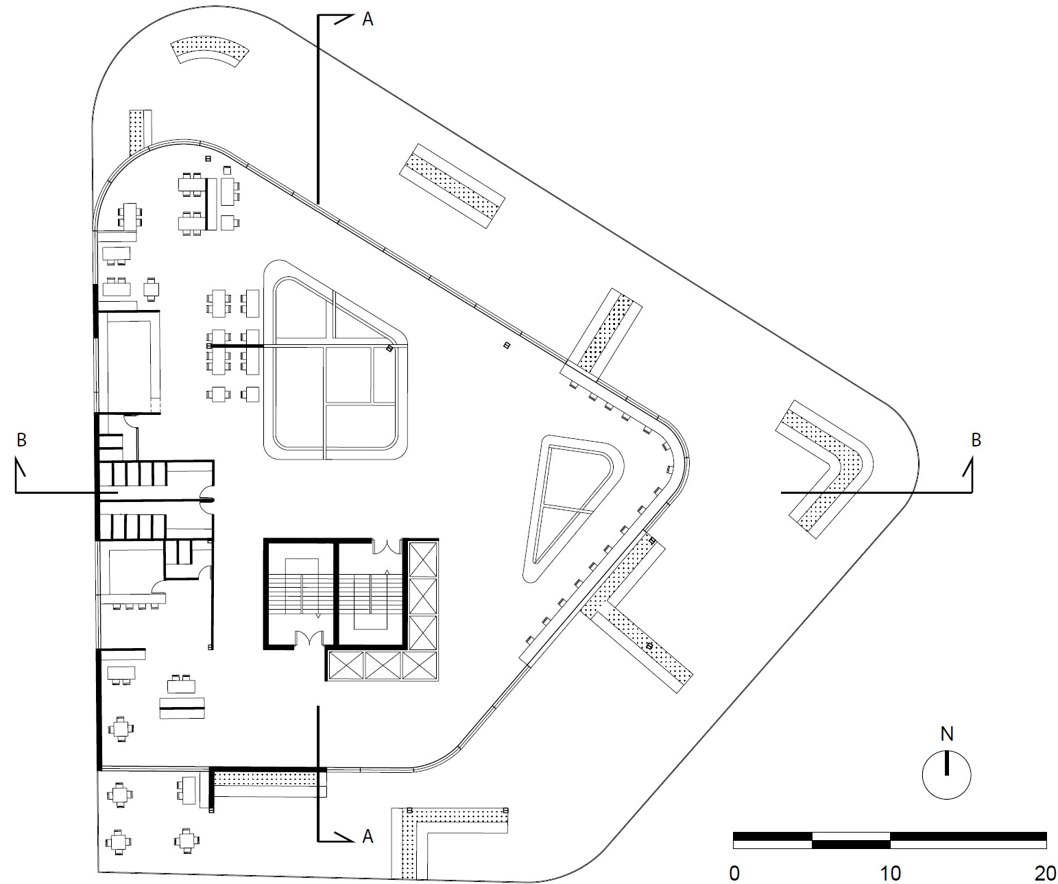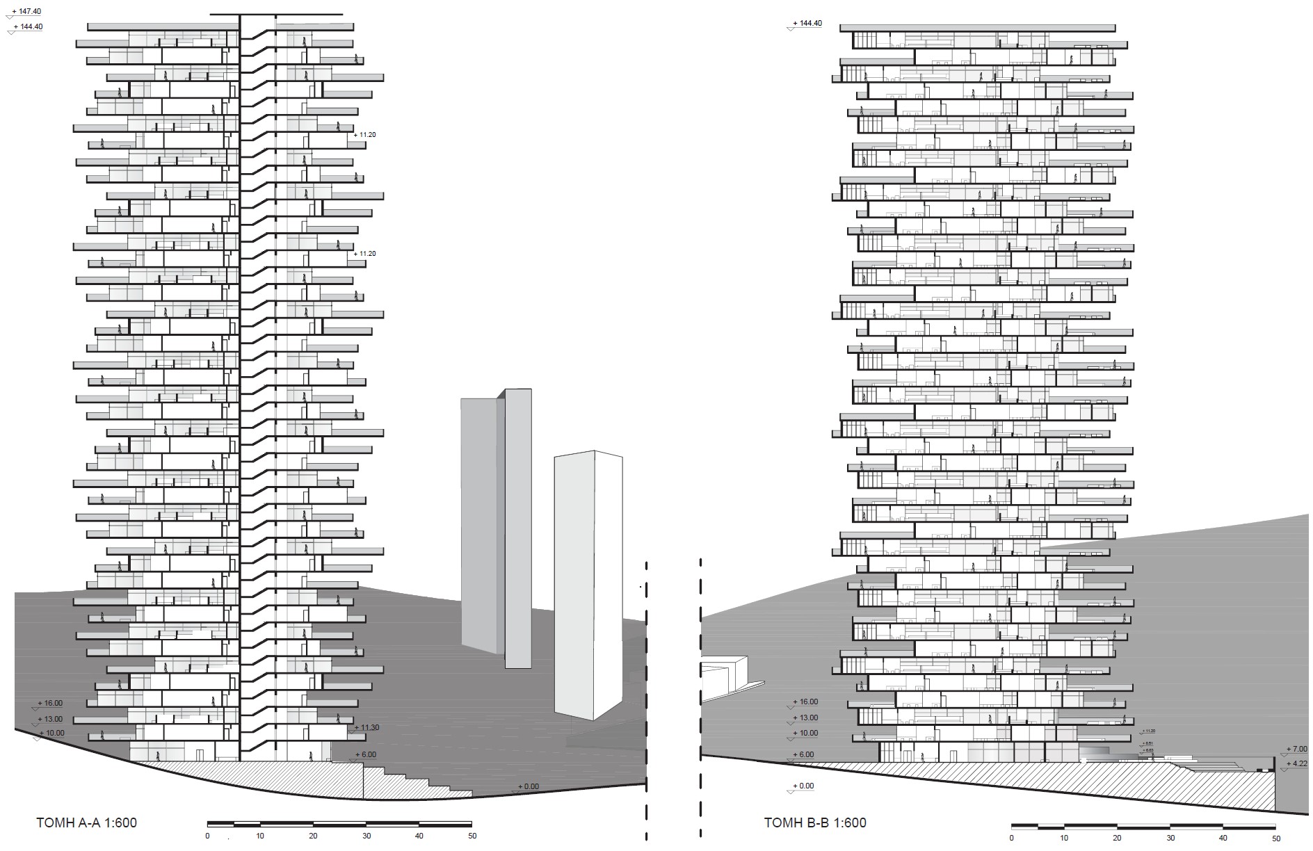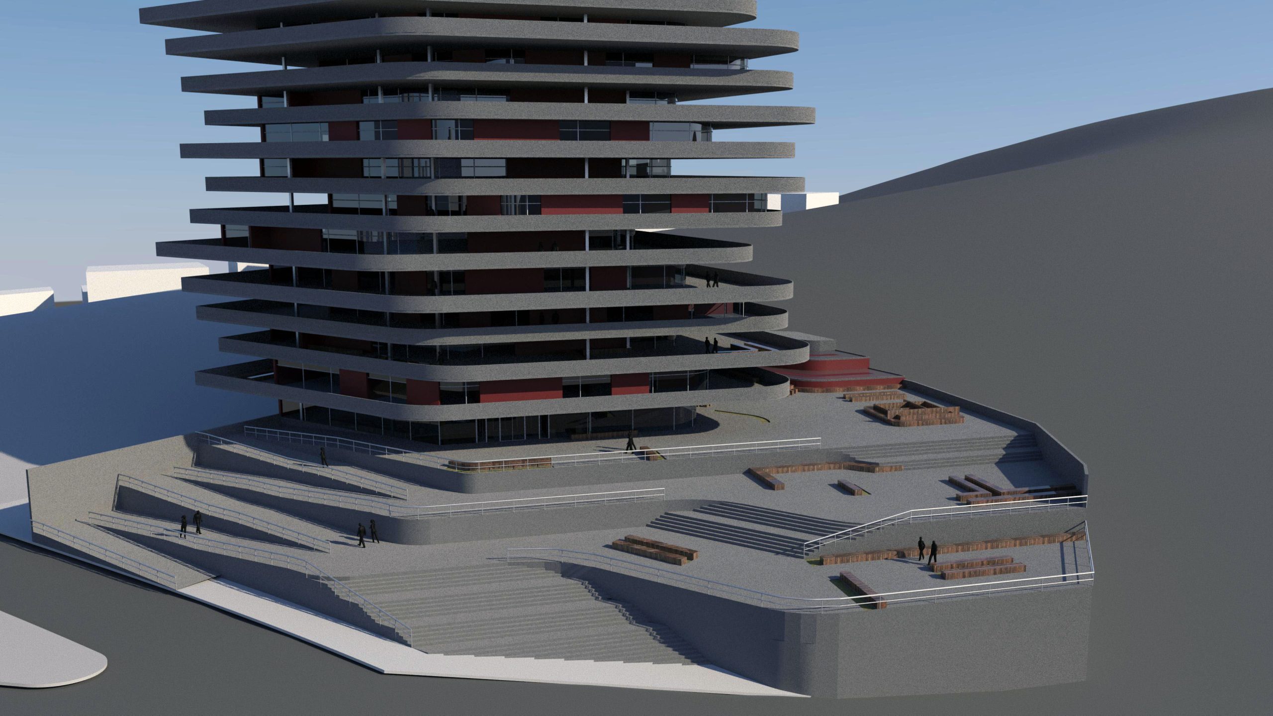 Inspired by nature in both form and function, this biomimetic project is based on the geometries of shale rocks. By observing the birds that nest on shale cliffs, we study the potential benefits of an architecture characterized by the contractions and protrusions formed due to an asymmetrical layering of similar masses. As a result, we take advantage of this morphology’s natural functionality to shield from the sun and wind. Specifically, this is a forty-two-story building that houses a variant of offices, study halls, indoor parks, and outdoor balconies, which despite its size could be categorized as a low energy consumption building design due to its energy efficient shape that both shades from the sun (and so it minimizes the use of air-conditioning) and protects from the wind (and so being able to ventilate naturally, through windows, despite the strong winds that are expected in high-rise buildings).