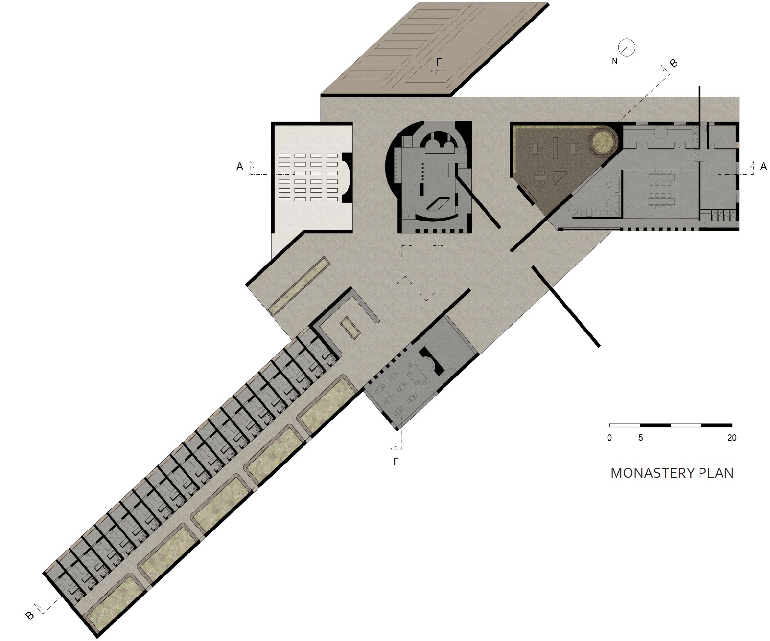 Driven by the rigorous pursuit of spiritual introspection and the solitary lifestyle, our design strategy prioritizes the creation of large, secluded volumes that act as sanctuaries from the external world. We anchored the architectural program around the essential pillars of daily life—the temple, the refectory, and the workshop. These spaces are not merely functional; they are conceived as distinct voids that encourage pause and reflection, allowing the architecture to recede and the mind to focus.